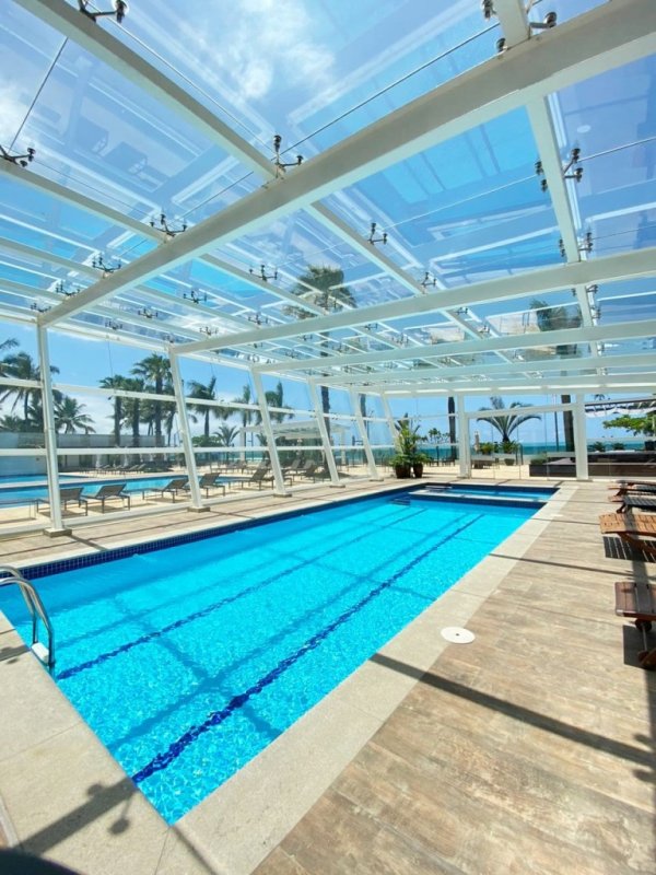 3 piscinas externas, sendo uma aquecida e coberta, outra com prainha e outra com pool bar e cascata;