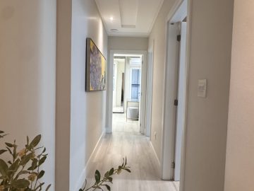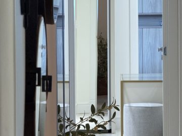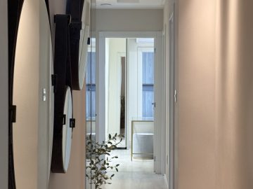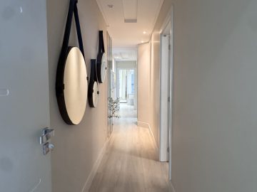 Portas em pivotantes, em Laca e fechaduras eletrônicas;