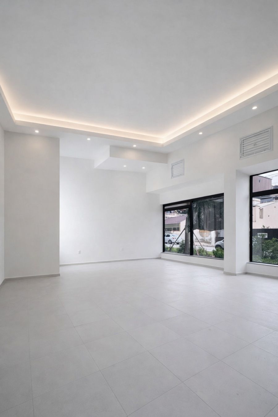 Tudo novo moderno com pé direito alto, sala de esquina com ótima visibilidade.